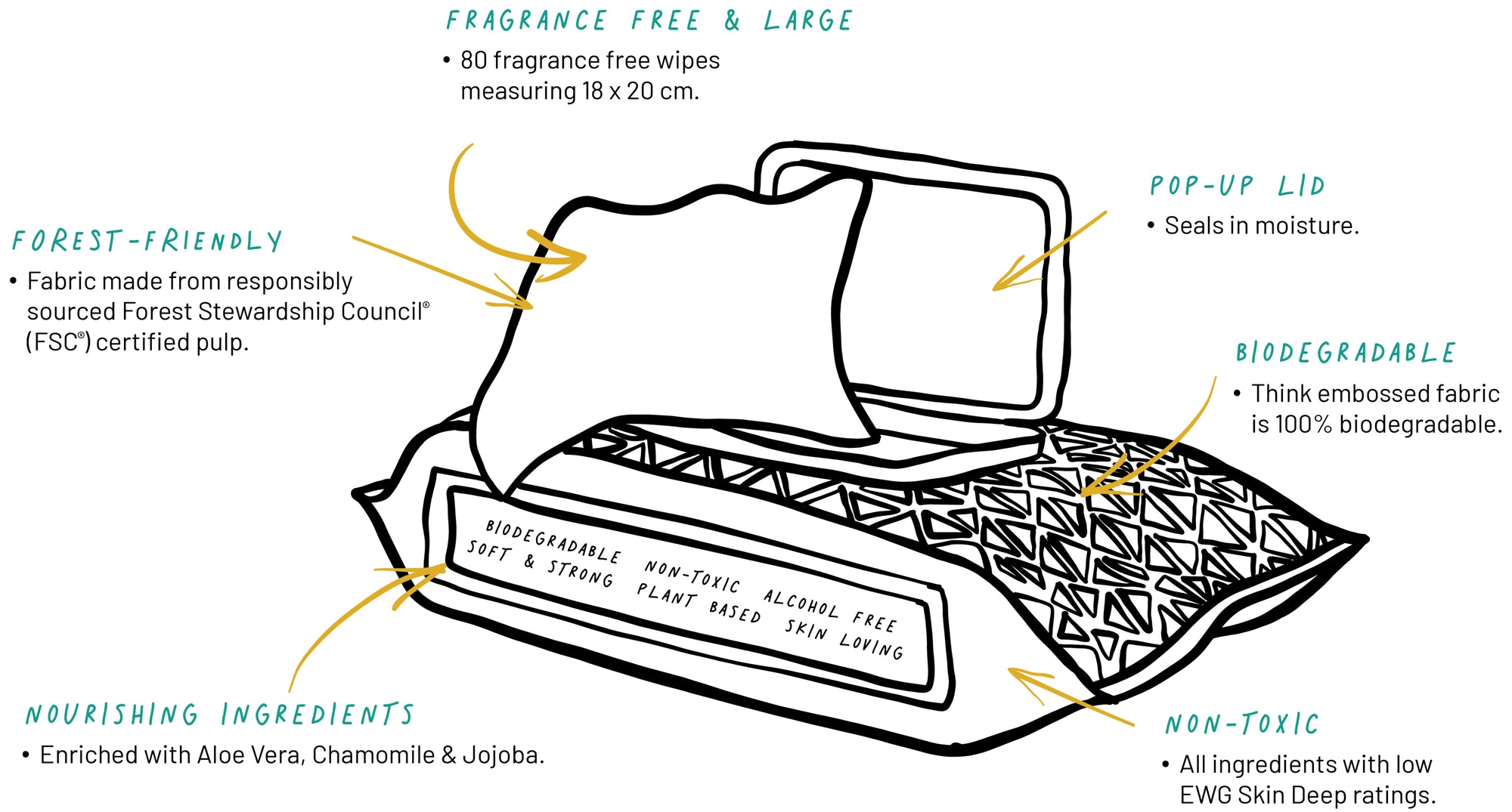 The inspiration behind our biodegradable baby wipes comes from being parents ourselves and our concern for the harmful chemicals that we were unknowingly exposing our children to 24 hours a day.